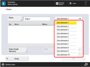 Na ekranie skanowania (Skanuj i wyślij) lub faksu możesz nacisnąć przcisk [Książka adresowa], aby zarejestrować grupę z ekranu książki adresowej.