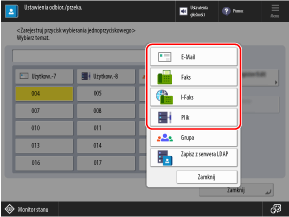 Na ekranie skanowania (Skanuj i wyślij) lub faksu możesz nacisnąć przycisk [Książka adresowa], aby zarejestrować odbiorcę z ekranu książki adresowej.