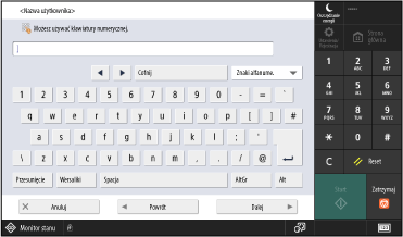Oprócz ekranu klawiatury można także używać ekranu z wyświetlonym symbolem [] do wprowadzania liczb poprzez dotykanie cyfr na klawiszach numerycznych.