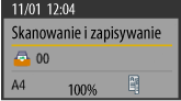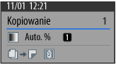 Wyświetla numer skrzynki lub nazwę skrzynki lokalizacji przechowywania, rozmiar oryginału, skalę kopiowania i ustawienia dwustronne.