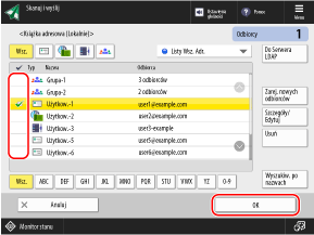 Zaznacz pola wyboru odbiorców, które mają zostać określone, i naciśnij [OK].