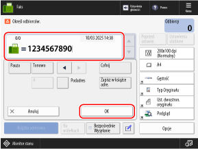 Sprawdź informacje dotyczące odbiorcy i naciśnij [OK].