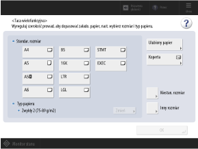 Ustawiony zostaje rozmiar i typ papieru.