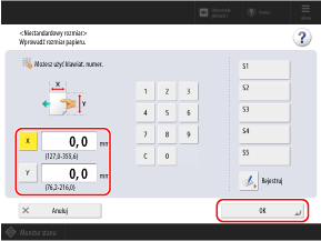 Wprowadź wartości w polach [X] i [Y], a następnie naciśnij [OK].