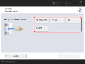 Po ustawieniu rozmiaru papieru za pomocą poniższej procedury typ papieru dla kopert jest ustawiany automatycznie.
