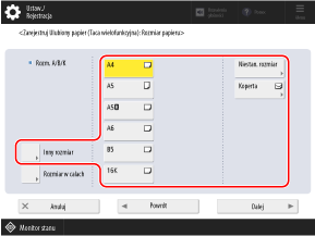 Jeśli wybierzesz przycisk z już zarejestrowanymi informacjami o papierze, zarejestrowane informacje zostaną zastąpione.