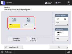 Wybierz liczbę stron, które mają zostać połączone na jednej stronie arkusza papieru. Na przykład, jeśli wybierzesz [4 na 1], na jednej stronie arkusza papieru zostaną połączone cztery strony.