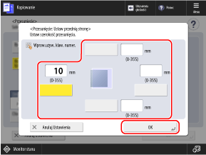 Naciśnij przycisk [Z klawiatury numerycznej], a następnie naciśnij przycisk [Ustaw], aby wybrać stronę, po której chcesz dostosować pozycję.