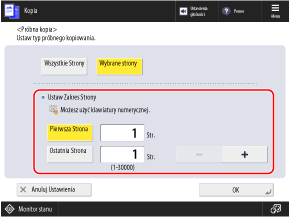 Wprowadź numery stron pierwszej i ostatniej strony, w oparciu o liczbę stron w gotowej kopii.