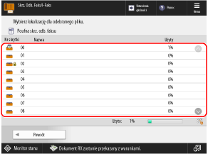 Zostanie wyświetlony ekran wyboru lokalizacji przechowywania odebranego faksu.