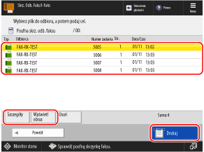 Wybierz faks do wydruku i naciśnij [Drukuj] [Rozpocznij Wydruk].