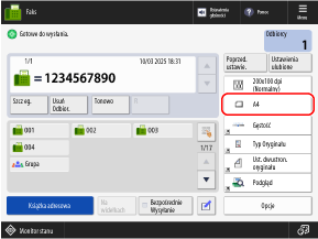 Naciśnij przycisk ustawień rozmiaru oryginału na ekranie faksu.