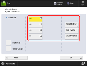 Naciśnij [Inny Rozmiar] i wybierz rozmiar papieru.