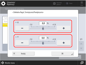Przesuń suwak w lewo lub w prawo, aby dostosować powiększenie dla osi [X] (w poziomie) i [Y] (w pionie).