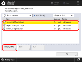 Wybierz zarejestrowany niestandardowy papier z listy i naciśnij przycisk [Szczegóły/Edytuj].