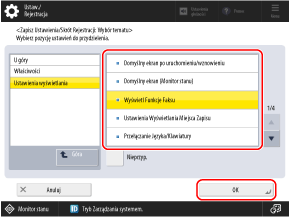 Wybierz ustawienia do zarejestrowania jako skróty i naciśnij przycisk [OK].