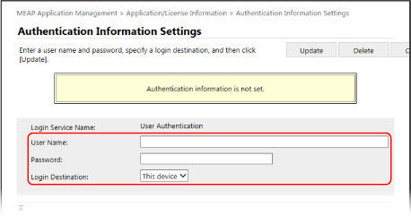 Jeśli zmienisz aplikację uwierzytelniającą (usługę logowania), możesz zostać poproszony o ponowne wprowadzenie informacji uwierzytelniających. W takim przypadku sprawdź informacje uwierzytelniające na ekranie [Authentication Information Settings].