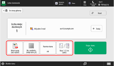 Za pomocą funkcji Łatwe skanowanie i wysyłanie/Łatwe skanowanie możesz skonfigurować podstawowe funkcje, takie jak określone miejsca docelowe i ustawienia kolorów, wykonując proste operacje na przyciskach.