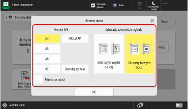 Ustawianie rozmiaru skanowania i orientacji oryginału