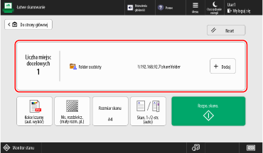 Można zmienić wywoływane miejsce docelowe i ustawienia skanowania oraz wysłać zeskanowane dane.
