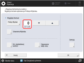 Aby przeprowadzić regulację, użyj panelu sterowania. Nie można przeprowadzić regulacji za pomocą Remote UI (Zdalny interfejs użytkownika) z komputera.