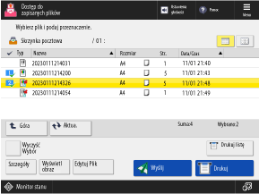 Użyj tego ekranu, aby wybrać pliki do wydrukowania lub wysłania.