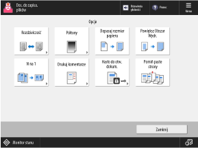 Skonfiguruj ustawienia kopiowania z funkcjami wykańczania, takimi jak sortowanie i zszywanie (w przypadku modelu z modułem wykańczania).