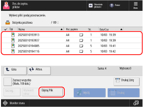 Za pomocą panelu sterowania urządzenia lub Remote UI (Zdalny interfejs użytkownika) można obsługiwać i edytować pliki zapisane w skrzynce pocztowej w następujący sposób:
