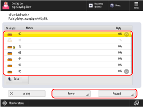 Wybierz skrzynkę pocztową, do której chcesz przenieść lub skopiować plik i naciśnij przycisk [Przesuń] lub [Powiel].