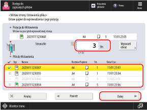 Określ pozycję, w której chcesz wstawić plik, i naciśnij przycisk [Dalej].