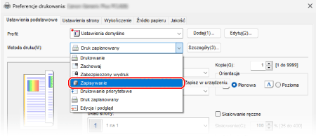 W [Metoda druku] wybierz [Zapisywanie].