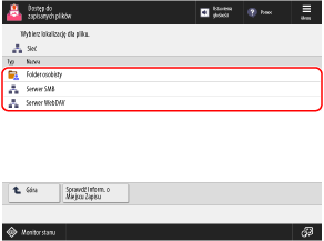 Panelu sterowania można używać do bezpośredniego drukowania za pomocą urządzenia plików PDF, XPS, JPEG i TIFF zapisanych w przestrzeni Zaawansowana przestrzeń na innym urządzeniu lub na serwerze plików (serwerze Windows) w sieci.