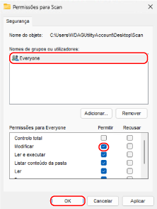 Em [Nomes de grupos ou utilizadores], selecione [Todos].