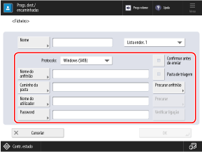 Quando [Windows (SMB)] estiver selecionado, [Verificar ligação] só consegue verificar até ao primeiro nível do caminho da pasta especificada.
