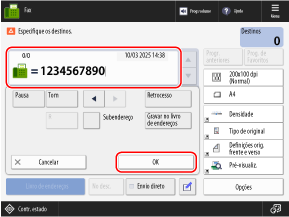 Verifique as informações sobre o destino e prima [OK].