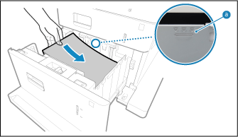 Alinhe a guia de formato do papel com os indicadores de formato do papel para o formato de papel pretendido.