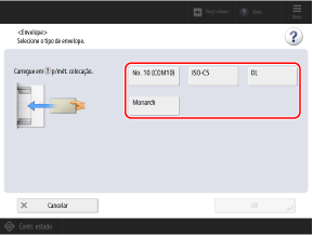 Ao definir o tamanho do papel com o seguinte procedimento, o tipo de papel é definido automaticamente para os envelopes.