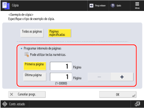 Especifique as páginas a serem incluídas no exemplo de cópia.