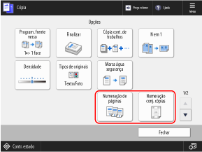 * Quando a numeração do conjunto de cópias é executada, os números são impressos em todas as páginas.