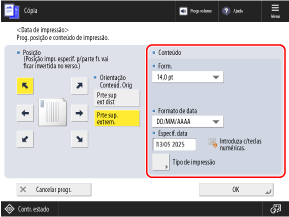 Adiciona a data (ano, mês e dia) ao copiar. Pode especificar a data a ser impressa.