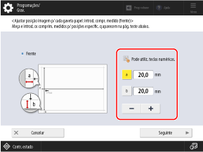 Meça as margens no lado da frente, introduza os valores e prima [Seguinte].
