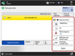 Se carregar em [Ler e Enviar] no ecrã [Início], o ecrã de leitura é apresentado.
