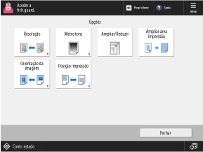 Carregue nos botões neste ecrã para definir as definições detalhadas de impressão. Após definir as definições de impressão, carregue em [Fechar] para voltar ao ecrã de definições de impressão.