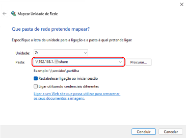 Aparece o ecrã [Mapear unidade de rede].