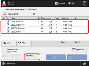 Ao utilizar e editar ficheiros através da Remote UI (Interface Remota) de um computador, utilize e edite os ficheiros em [Access Received/Stored Files] na página do Portal. No entanto, não pode usar a Remote UI (Interface Remota) para utilizar e editar alguns itens.