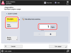 Para eliminar várias páginas consecutivas ao mesmo tempo, prima [Várias páginas]. Especifique as páginas a serem excluídas especificando a primeira e a última página.