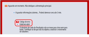 Antes de contactar um representante de serviço, reinicie a máquina para ver se a mensagem de erro desaparece. Se a mensagem de erro é exibida novamente, contacte um representante de serviço e reporte os sintomas.