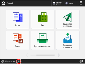 Главный] на панели управления. По умолчанию экран [Главный] отображается после включения питания и сразу после закрытия экрана запуска, а также если в течение определенного периода времени на каждом экране не выполняются никакие операции.