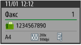 Отображение настроек количества адресатов, адресатов*1, формата оригинала, разрешения и 2-сторонней печати.