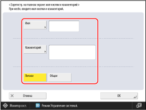 Введите имя кнопки и комментарий, а затем нажмите кнопку [Личное] или [Общее].